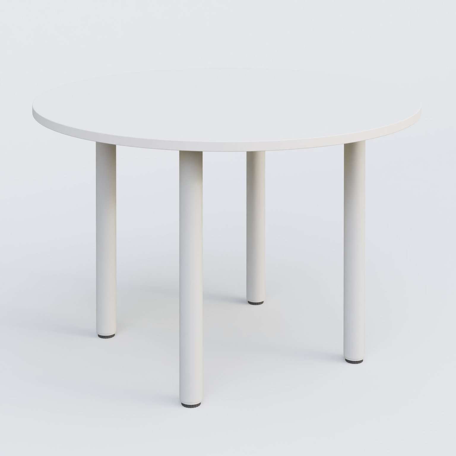Table ronde diametre 120 cm avec quatres pieds fixes. Plateau Blanc et pietement Blanc