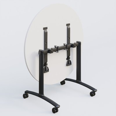 Table ronde gamme Arca D110 cm cm avec plateau en 25 mm d'épaisseur. Mécanisme de blocage/déblocage avec deux poignées sous le plateau aisémant accessibles.