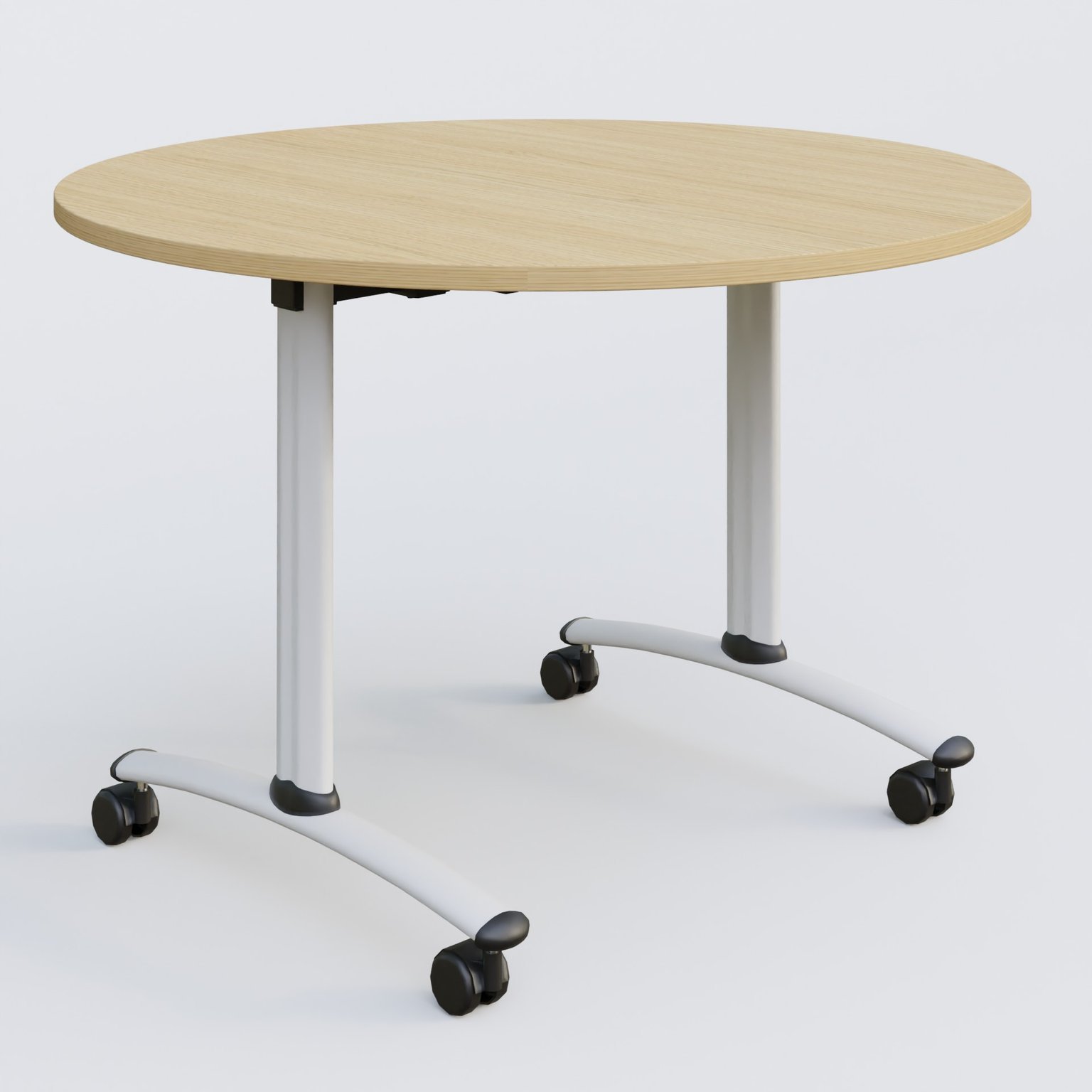 Table ronde gamme Arca D110 cm. Plateau Chêne clair et pietement Blanc.