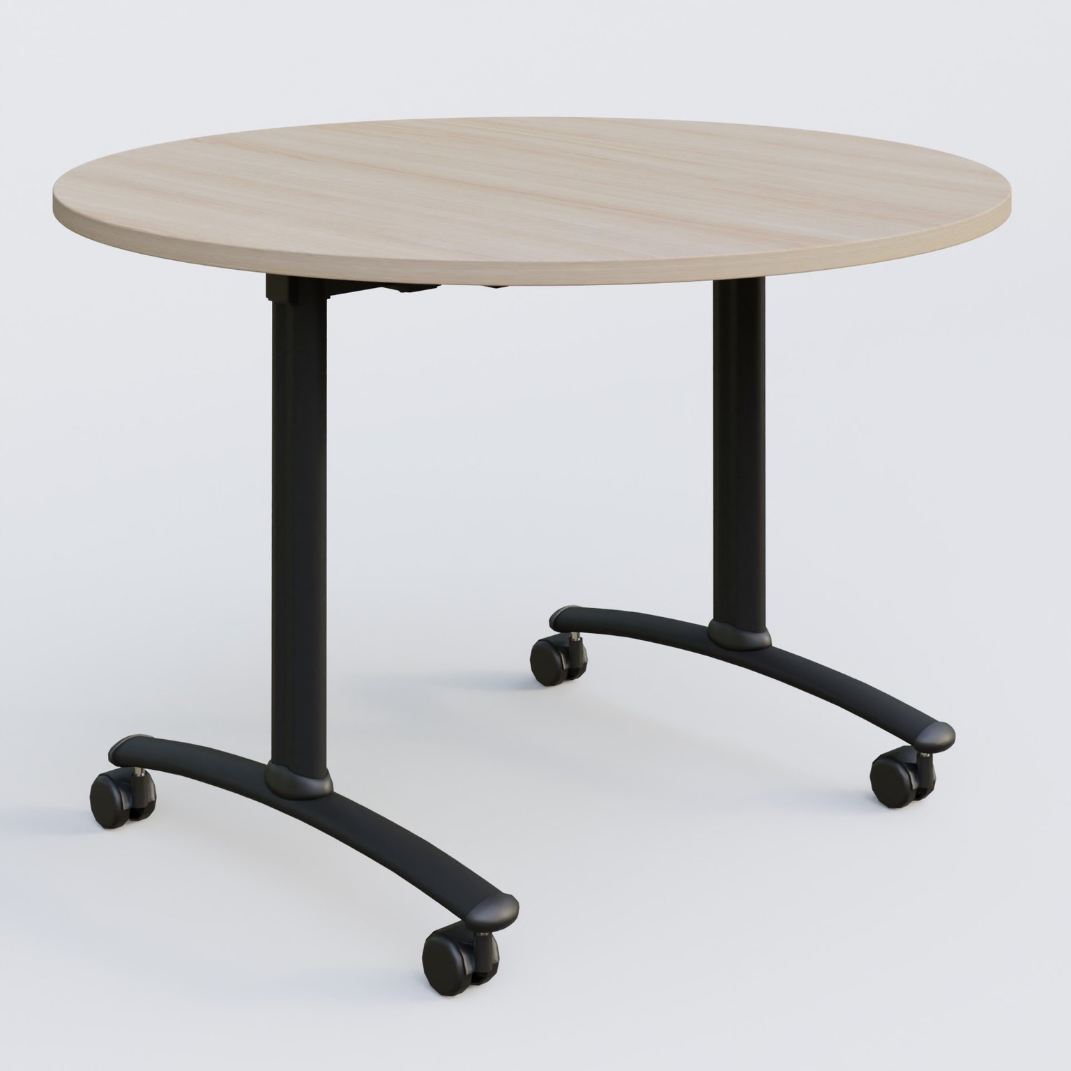 Table ronde gamme Arca D110 cm cm avec plateau en 25 mm d'épaisseur. Mécanisme de blocage/déblocage avec deux poignées sous le plateau aisémant accessibles.