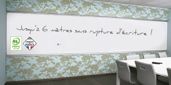 Tableau émail grande largeur H.120xL.400cm, surface effaçable à sec et magnétique, auget toute longueur intégré, écriture feutre PRIX AVEC INSTALLATION