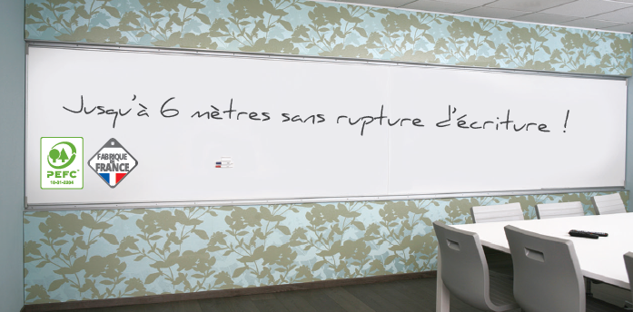 - Tableau émail grande largeur H.120xL.600cm, surface effaçable à sec et magnétique - PRIX HORS INSTALLATION