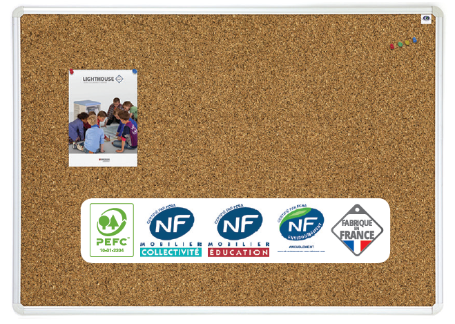 Tableau liège H.100xL.150cm, surface punaisable, cadre en alu anodisé - PRIX HORS INSTALLATION