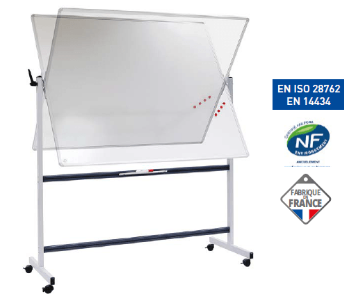 , double surface effaçable à sec et magnétique, blocage du tableau par poignée de serrage, piét. réglable ht sur 4 roues 2 avec frein