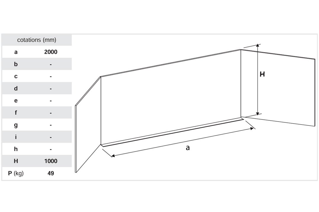 - Rainure basse aluminium laqué sur toute la longueur servant à la fixation et de porte crayons.