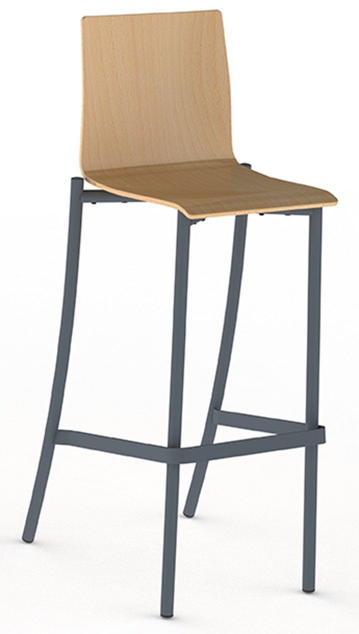 Tabouret ANDRÉ assise et dossier bois Blueprotech® piètement époxy - H80 cm