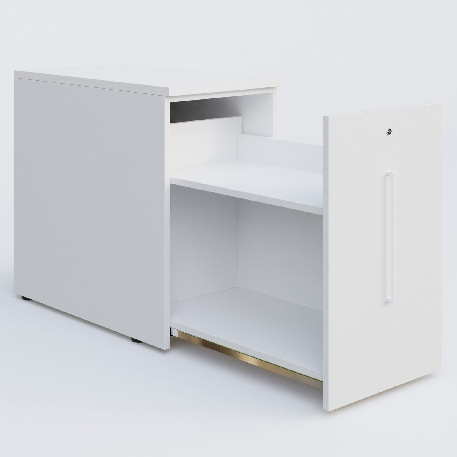 Tour de rangement hauteur de bureau 72 cm position à droite. Caisson Blanc et top de finition Blanc.