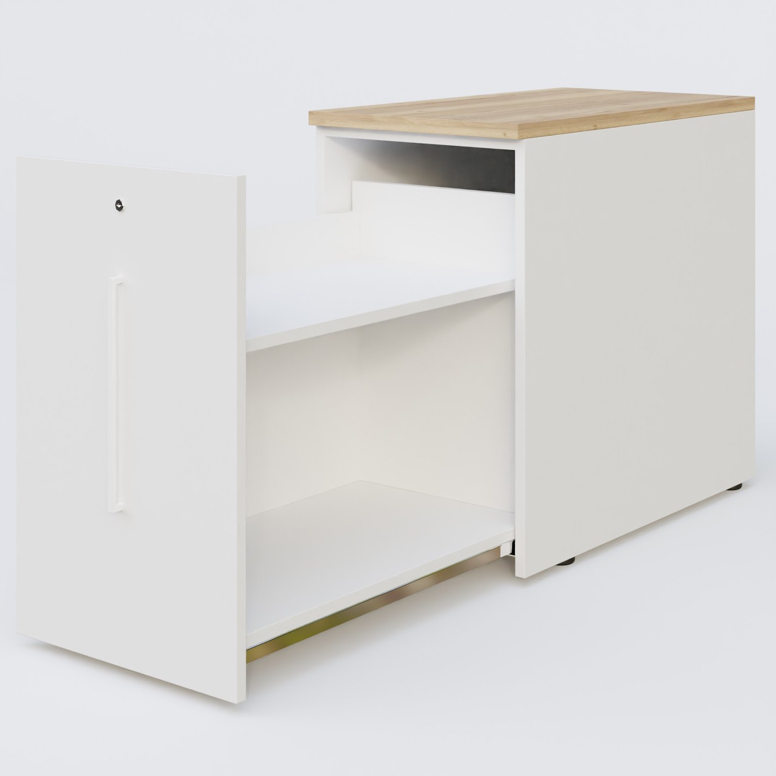 Tour de rangement hauteur de bureau 72 cm position à gauche. Caisson Acacia et top de finition Blanc. acaciaAk