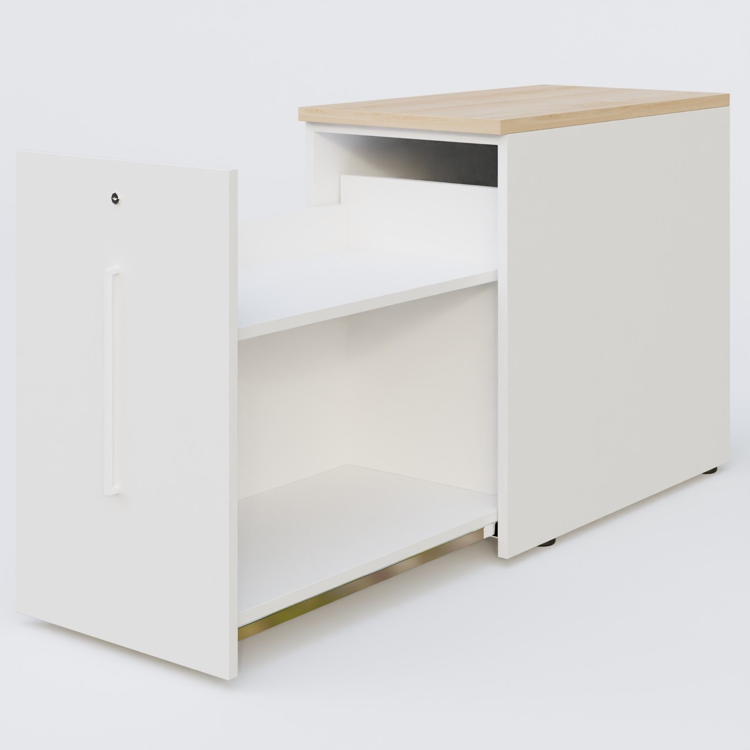 Tour de rangement hauteur de bureau 72 cm position à gauche. Caisson Chêne naturel et top de finition Blanc. cheneNaturelMh84