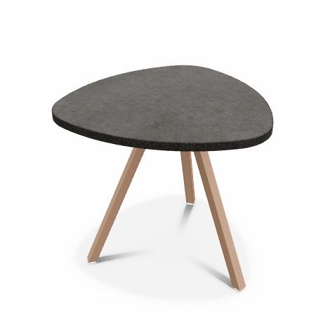 Trium- Table forme triangulaire hauteur 40cm-Plateau HPL Béton foncé/ piétement Epoxy Rose mat