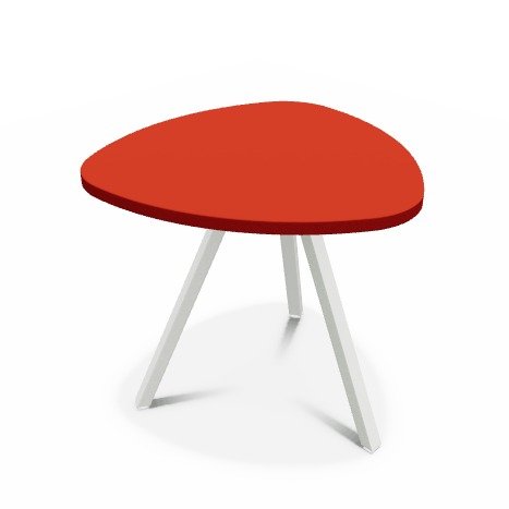 Trium- Table forme triangulaire hauteur 40cm-Plateau HPL Rouge/ piétement Epoxy Blanc mat