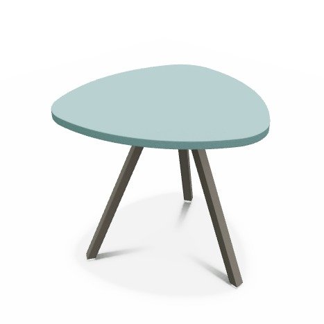 Trium- Table forme triangulaire hauteur 40cm-Plateau HPL Bleu/ piétement Epoxy Brun foncé mat
