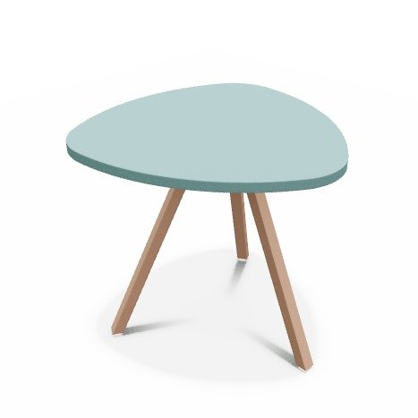 Trium- Table forme triangulaire hauteur 40cm-Plateau HPL Bleu/ piétement Epoxy Rose mat