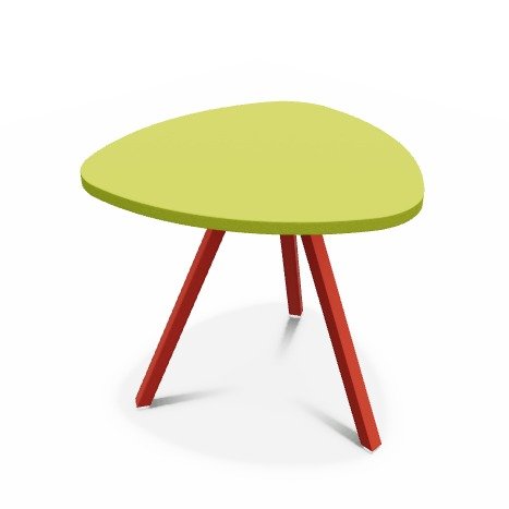 Trium- Table forme triangulaire hauteur 40cm-Plateau HPL Vert/ piétement Epoxy Rouge mat