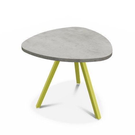 Trium- Table forme triangulaire hauteur 40cm-Plateau HPL Béton clair/ piétement Epoxy Light olive mat