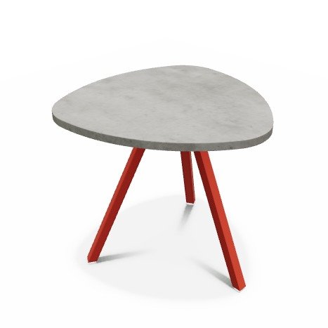 Trium- Table forme triangulaire hauteur 40cm-Plateau HPL Béton clair/ piétement Epoxy Rouge mat
