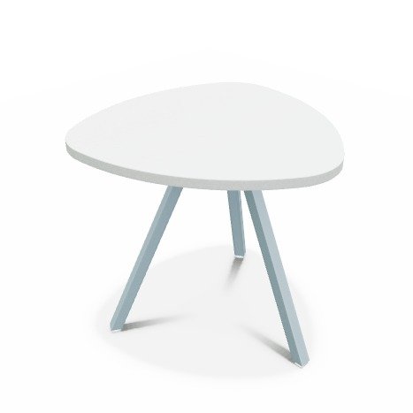 Trium- Table forme triangulaire hauteur 40cm-Plateau HPL Blanc/ piétement Epoxy Light blue mat