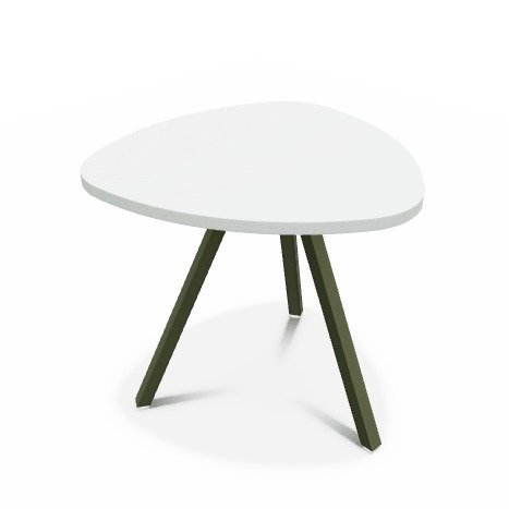Trium- Table forme triangulaire hauteur 40cm-Plateau HPL Blanc/ piétement Epoxy Vert bronze mat