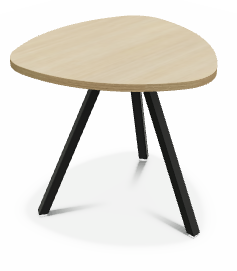 Trium- Table forme triangulaire hauteur 40cm-Plateau HPL Acacia/ piétement Epoxy Noir mat