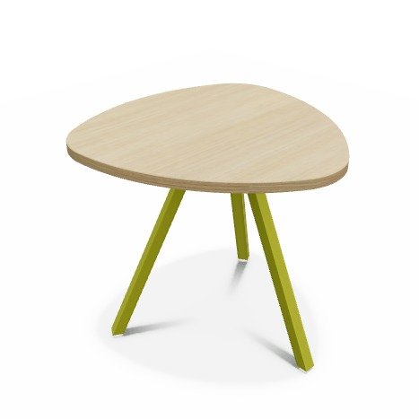 Trium- Table forme triangulaire hauteur 40cm-Plateau HPL Acacia/ piétement Epoxy Light olive mat