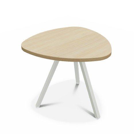 Trium- Table forme triangulaire hauteur 40cm-Plateau HPL Acacia/ piétement Epoxy Blanc mat