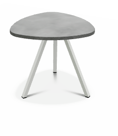 Trium- Table forme triangulaire hauteur 40cm-Plateau HPL Craie Grise / piétement Epoxy Blanc