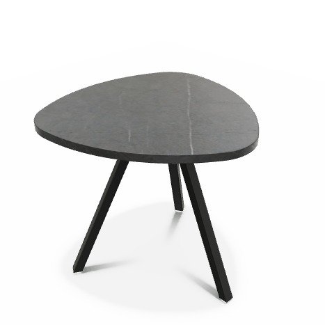 - TRIUM Table basse forme triangulaire L.50xP.50xH.40cm, coloris plateau marbré / pieds noirs