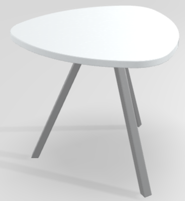 Trium- Table forme triangulaire hauteur 45cm-Plateau HPL Blanc/ piétement Epoxy Aluminium