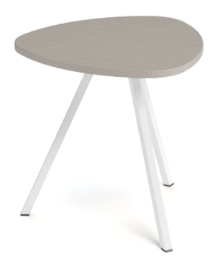 Trium- Table forme triangulaire hauteur 45cm-Plateau HPL Acacia/ piétement Epoxy Blanc mat