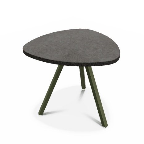 Trium- Table forme triangulaire hauteur 40cm-Plateau HPL Béton foncé/ piétement Epoxy Vert bronze mat
