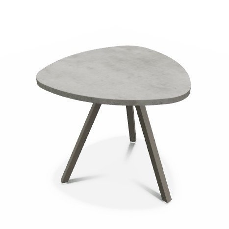 Trium- Table forme triangulaire hauteur 40cm-Plateau HPL Béton clair/ piétement Epoxy Brun foncé mat