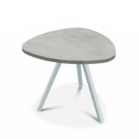 Trium- Table forme triangulaire hauteur 40cm-Plateau HPL Béton clair/ piétement Epoxy Light blue mat