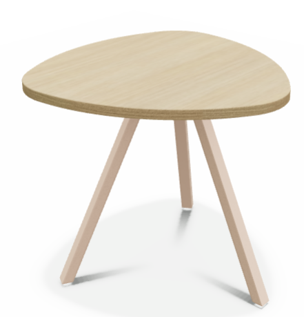 Trium- Table forme triangulaire hauteur 45cm-Plateau HPL Acacia/ piétement Epoxy Rose mat