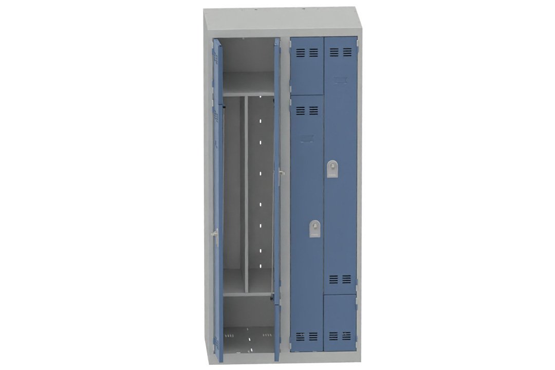 Vestiaire gain de place 2 colonnes (fermeture cadenas) H,180xL,80xP,50cm coffre gris clair/portes bleu