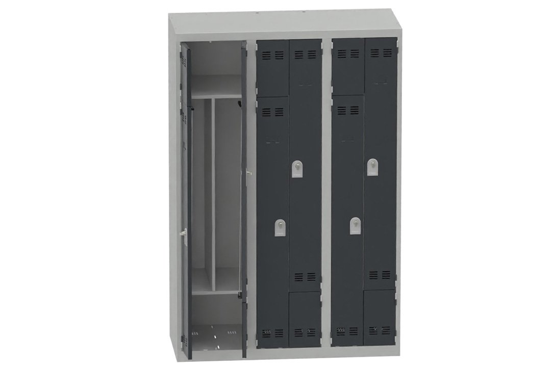 Vestiaire gain de place 3 colonnes (fermeture cadenas) coffre gris clair/portes anthracite
