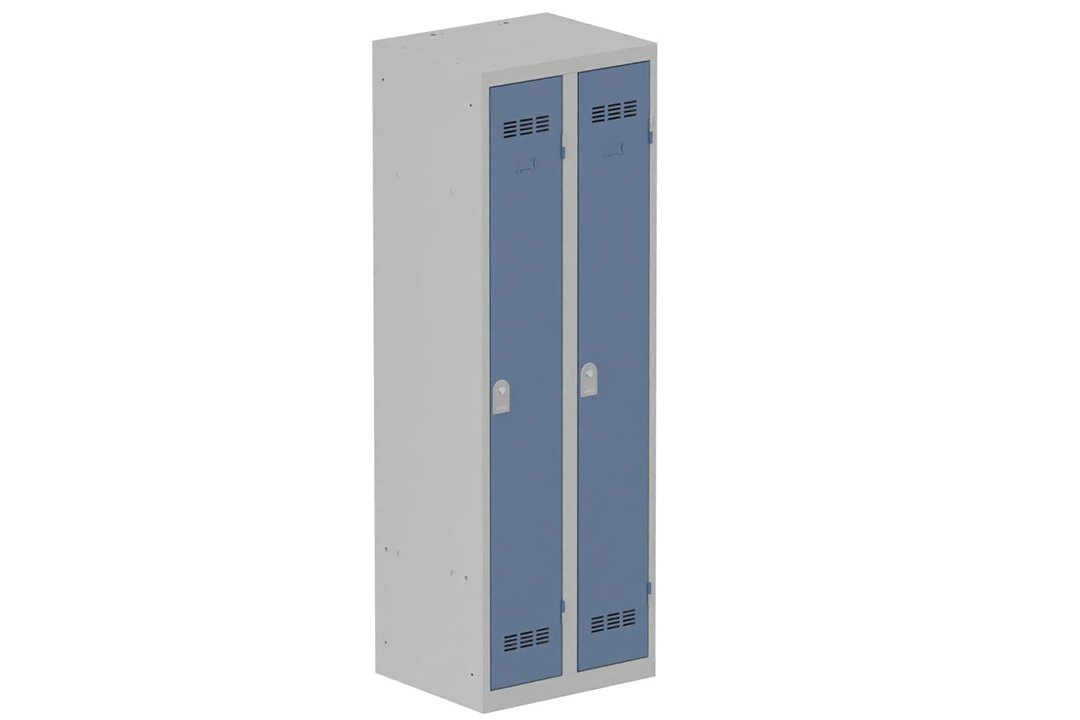 Vestiaire industrie propre 2 portes (serrure 2 clés) H180xL60xP50cm coffre gris clair/ porte(s) bleu