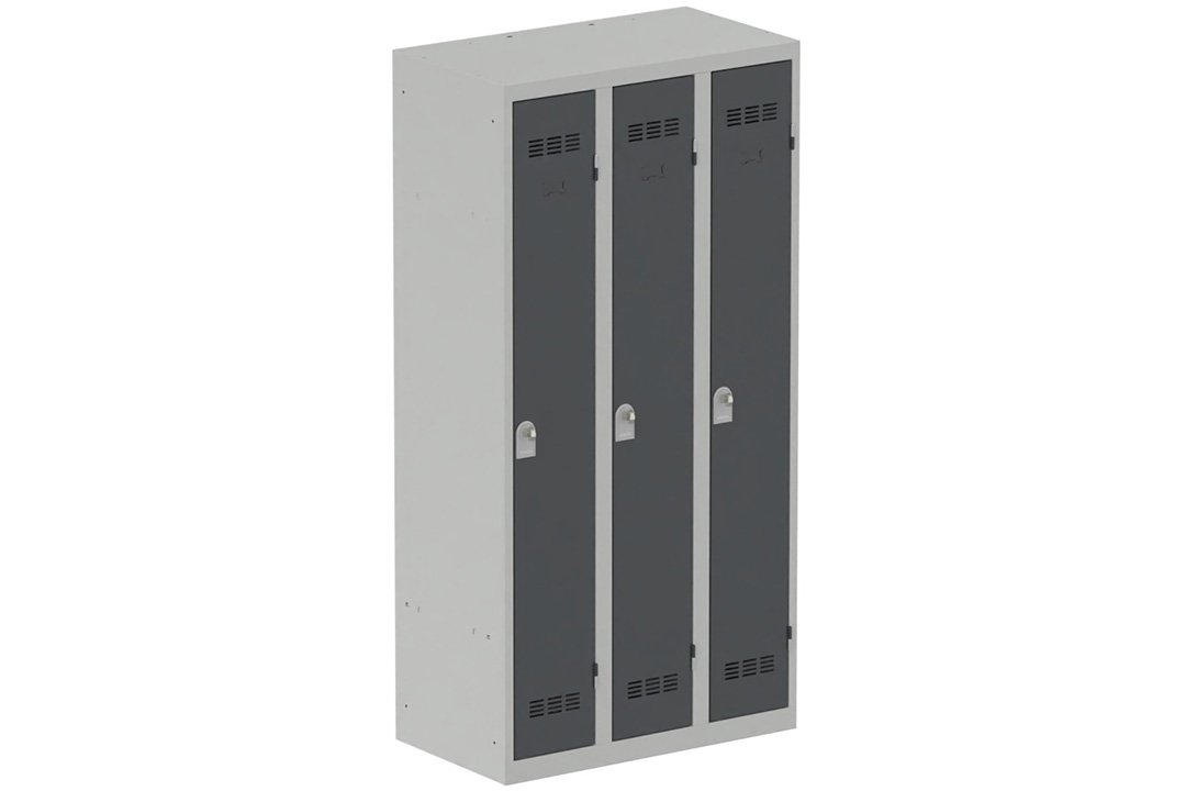 Vestiaire industrie propre 3 portes (fermeture cadenas) H180xL90xP50cm coffre gris clair/ porte(s) anthracite