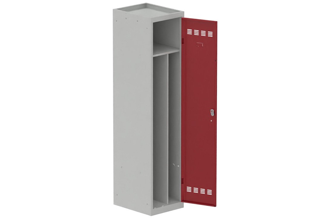 Vestiaire industrie salissante 1 porte (fermeture cadenas) H180xL40xP50cm coffre gris clair/ porte(s) rouge