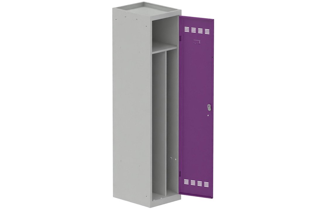 Vestiaire industrie salissante 1 porte (serrure 2 clés) H180xL40xP50cm coffre gris clair/ porte(s) prune