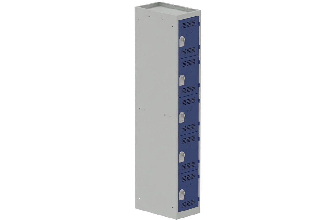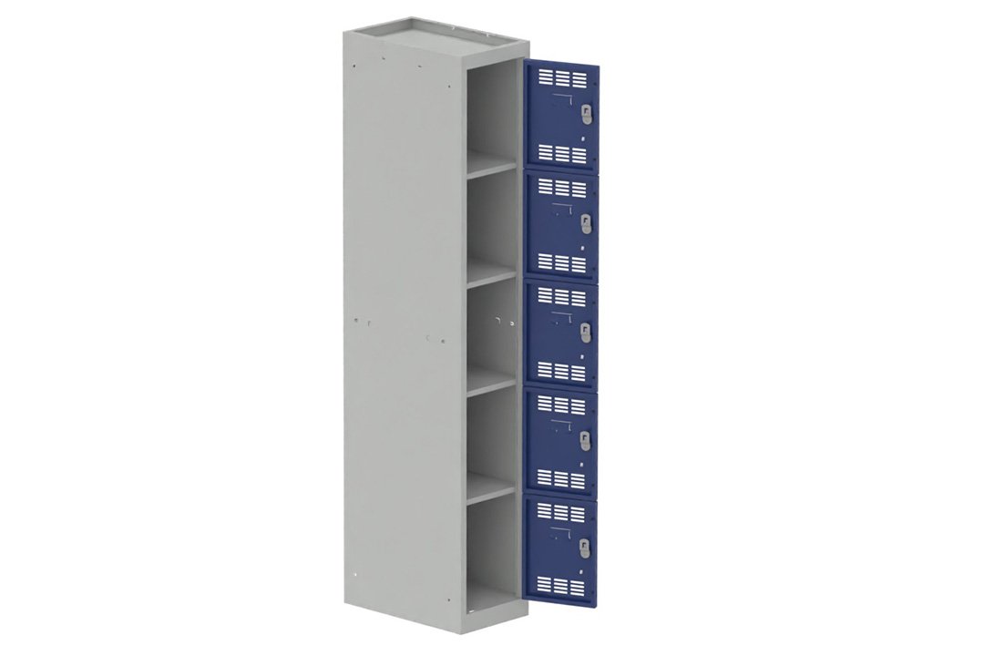 Vestiaire multicases, 1 colonne L.30cm/5 cases, coffre gris clair/portes bleu foncé