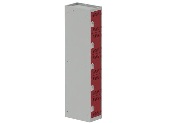 Vestiaire multicases 1 colonne L,30cm 5 cases (fermeture cadenas) H,180xL,30xP,50cm coffre gris clair/portes rouge