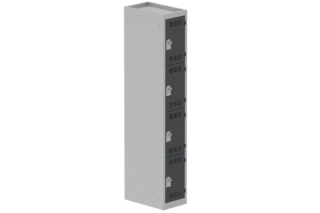 Vestiaire multicases 1 colonne L,30cm 4 cases (fermeture cadenas) H,180xL,30xP,50cm coffre gris clair/portes basalte grisClairGc basalteBs