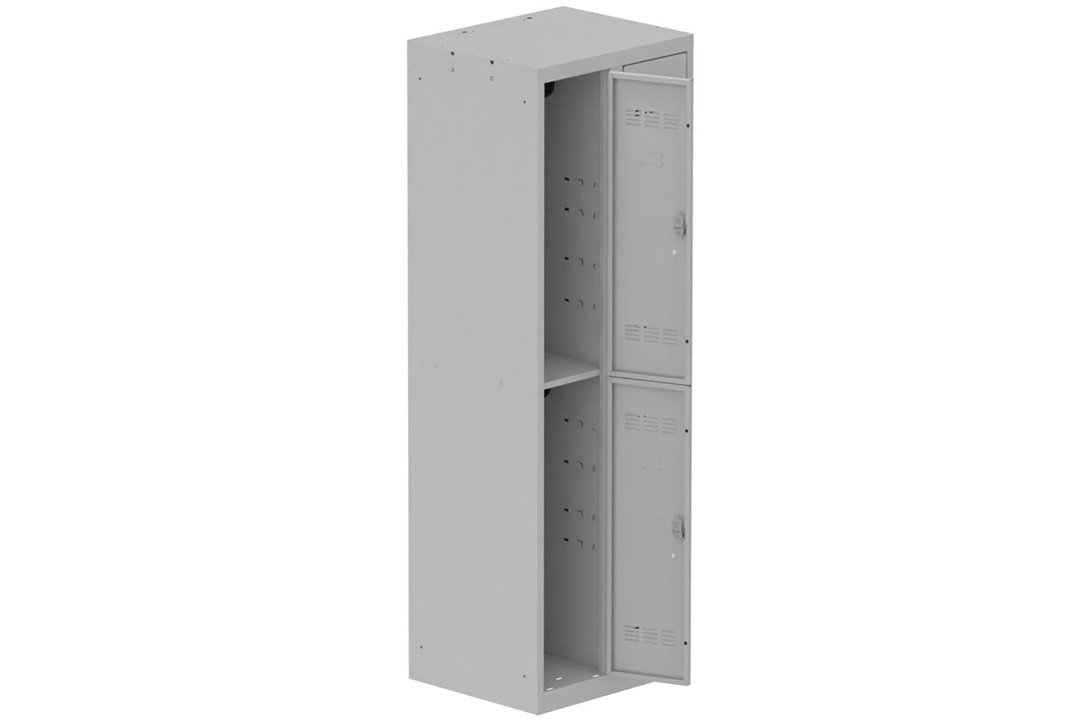 Vestiaire multicases 2 colonnes L,30cm 2 cases (fermeture cadenas) H,180xL,60xP,50cm coffre gris clair/portes gris clair