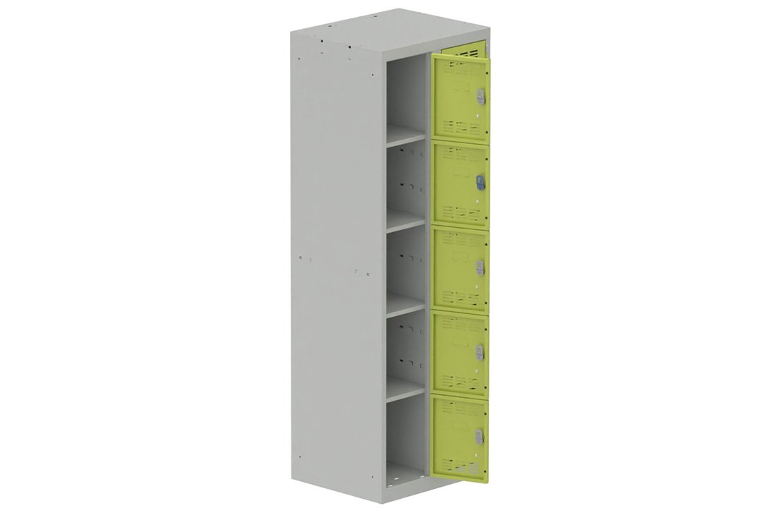 Vestiaire multicases 2 colonnes L,30cm 5 cases (fermeture cadenas) H,180xL,60xP,50cm coffre gris clair/portes anis