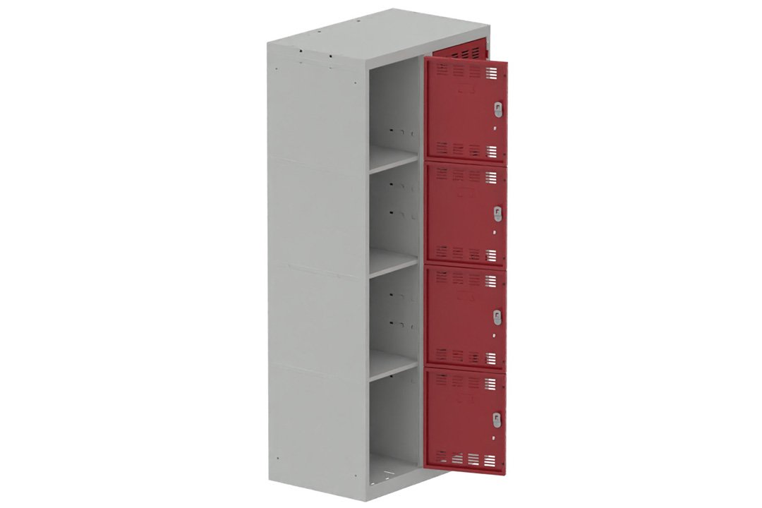 Vestiaire multicases 2 colonnes L,40cm 4 cases (fermeture cadenas) H,180xL,80xP,50cm coffre gris clair/portes rouge