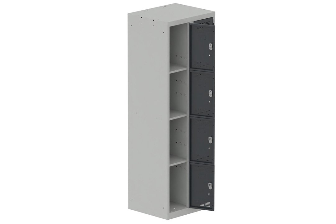 Vestiaire multicases 2 colonnes L,30cm 4 cases (fermeture cadenas) H,180xL,60xP,50cm coffre gris clair/portes basalte grisClairGc basalteBs