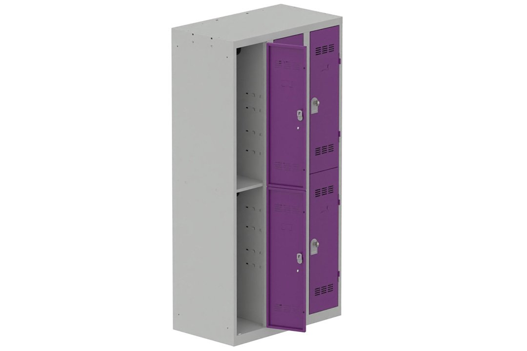 - Vestiaire multicases 3 colonnes L,30cm 2 cases (fermeture cadenas) H,180xL,90xP,50cm coffre gris clair/portes prune