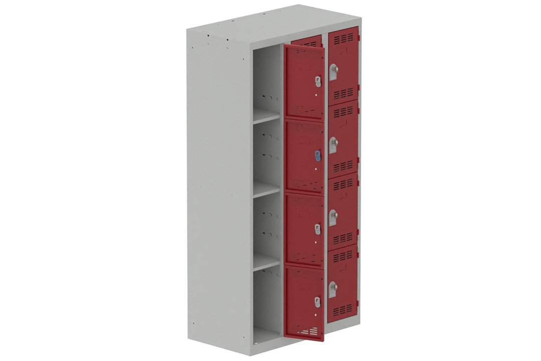 Vestiaire multicases 3 colonnes L,30cm 4 cases (fermeture cadenas) H,180xL,90xP,50cm coffre gris clair/portes rouge