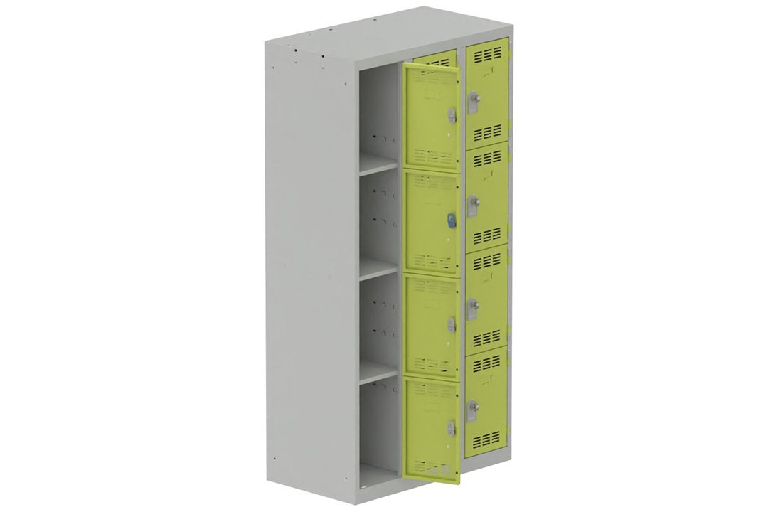 Vestiaire multicases 3 colonnes L,30cm 4 cases (fermeture cadenas) H,180xL,90xP,50cm coffre gris clair/portes anis