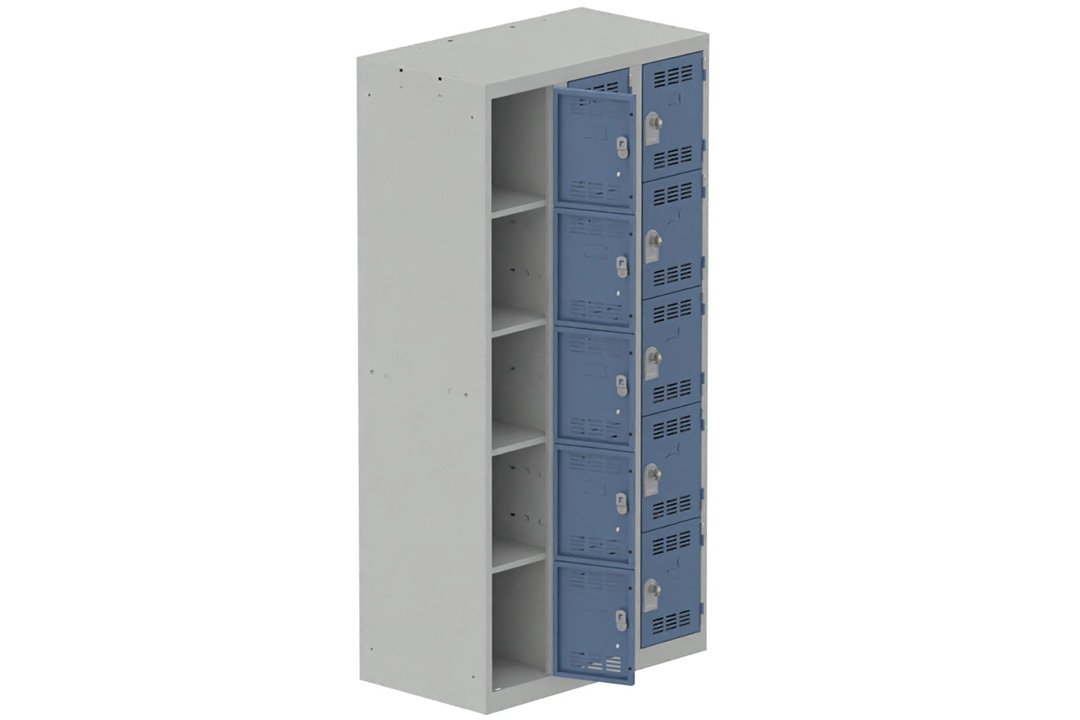 Vestiaire multicases 3 colonnes L,30cm 5 cases (fermeture cadenas) H,180xL,90xP,50cm coffre gris clair/portes bleu